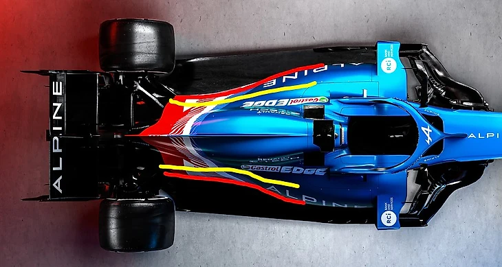 Однако возвращение легендарного национального гоночного цвета немного оттенило несколько действительно интересных технических деталей в новой A521. При близком рассмотрении корпуса, задней части и моторного отсека стало ясно: бывшая «Рено» рискует не только с подписанием 39-летнего Фернандо Алонсо сразу на два сезона, но и с конструкцией машины. Ее концепцию в попытке обойти новые ограничения правил развернули против главных трендов современной «Формулы-1» – и не оставили ни малейшего шанса на переделку машины в случае провала.