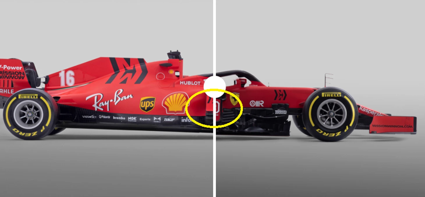 Также заметно уменьшение боковых воздухозаборников параллельно с увеличением верхнего: так Скудерия явно пыталась эффективнее перераспределить аэродинамические потоки параллельно с оптимизацией охлаждения. Решение разгадали еще после публикации видео с подгонкой сидений пилотов – но тогда трудно было понять, насколько же ниже окажется моторный отсек. Похоже, за повышение лобового сопротивления в данной зоне можно больше не волноваться.