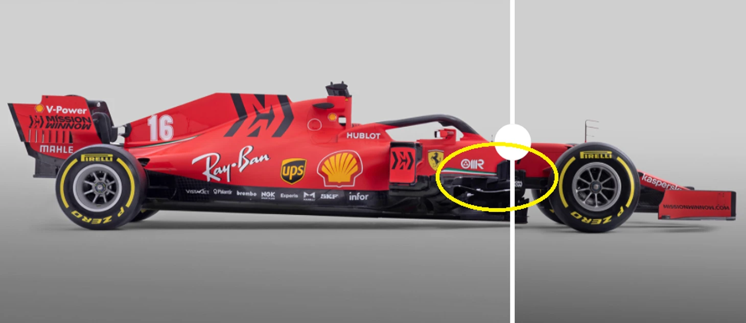 Здесь инженер, очевидно, имел в виду окончательный переход на концепцию «Мерседеса» – «Астон Мартин»: установленных под углом радиаторов и проведения основного воздушного потока над понтонами, а не под ними (философия «подрезки», которую Скудерия изобрела и и использовала с 2017-го).