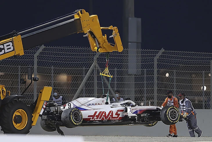 Мазепин разбил болид-триколор уже в третьем повороте первой гонки «Ф-1». Детская ошибка – дал газу на поребрике