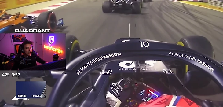 Ландо не был бы Ландо без смешных реакций на собственные успехи. В прошлом году он смаковал моменты с собой в нарезках мемов – и сейчас порадовался как ребенок, увидев борьбу с Пьером Гасли на четвертом круге: