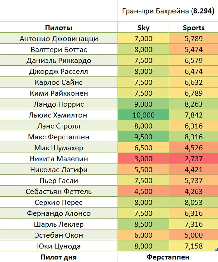 Оценки пилотам на Гран-при Бахрейна (8.294 балла):