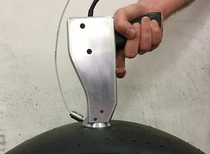 Выглядит процесс так: пистолет прикладывается к покрышке и считывает информацию.