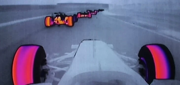 Правда, существуют бесконтактные способы контроля состояния шин в режиме реального времени: например, тепловизоры и сенсоры температуры и давления. Тепловизоры показывают изменение температуры шин по мере езды по трассе. Датчики – часть большой системы, собирающей телеметрию с машины.
