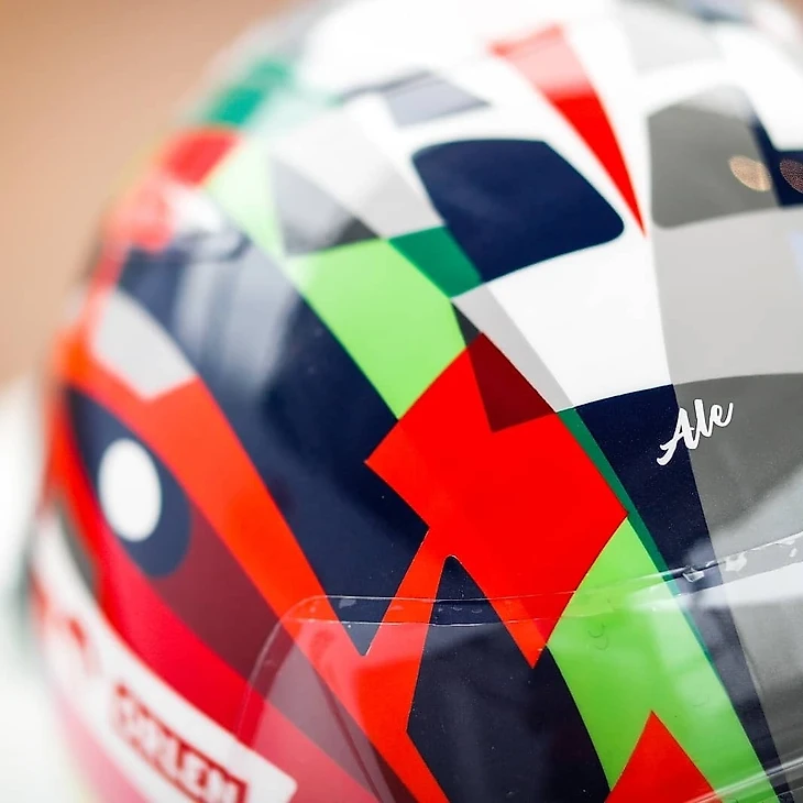 Нежные цвета роднят раскрас с выбором Риккардо, но подход австралийца с элементами стрит-культуры совсем другой. Творение Друди же больше напоминает абстрактные картины первой половины XX века. И неудивительно – ведь для шлема Джовинацци художник адаптировал собственный постер для Гран-при Эмилии-Романьи.