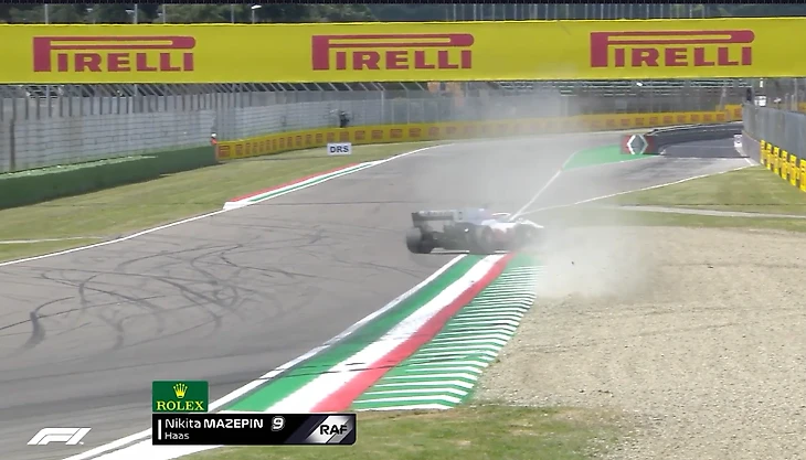 В первой практике перед Гран-при Эмилии-Романьи Мазепина развернуло в начале сессии – возможно, отчасти из-за условий на треке: с утра в Имоле градусник показывал не больше +14 по Цельсию и гонщик не сумел толком прогреть шины.