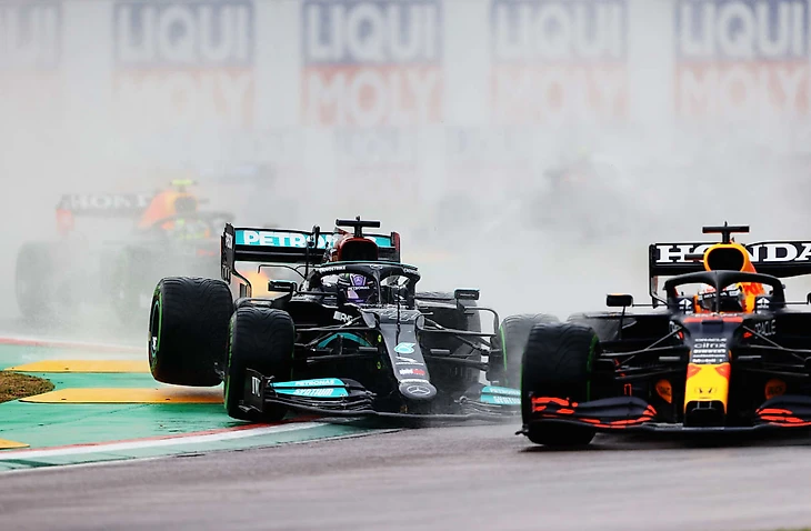 На помощь (сарказм) почти сразу же пришли Расселл и Боттас, устроившие жуткую аварию в конце прямой перед Tamburello. Гонка была остановлена красными флагами, а ее возобновление означало возвращение Хэмилтона (и не только его) в один круг с лидером.