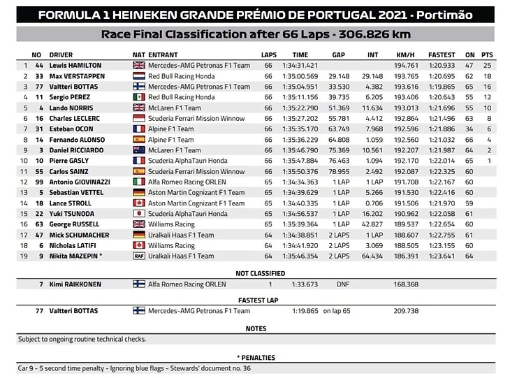 С учетом того, что лидером гонки все это время был Боттас, вопросов относительно победителя гонки ни у кого не возникало. Финн не только пустил Хэмилтона, но и не смог удержать позади Ферстаппена.