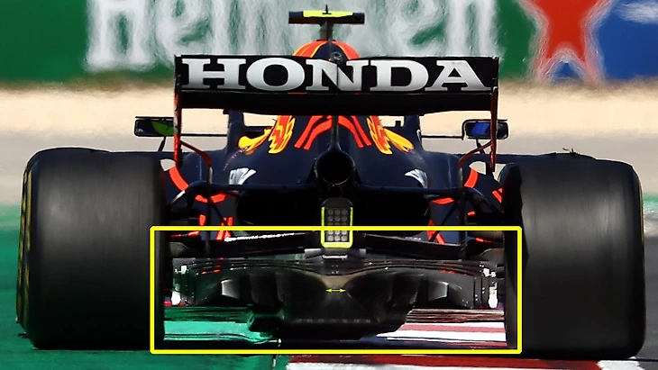 Изменения происходят спереди и сзади: модифицированные воздуховоды передних тормозов, полностью пересмотренные дефлекторы, изменения по внешнему краю днища, появились новые аэродинамические элементы. Все было сделано ради нового диффузора.