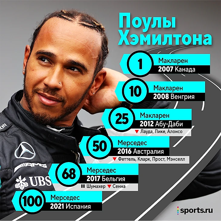 «Поверить не могу, что взял 100 поулов, – поразился семикратный чемпион мира. – Кто бы мог подумать об этом в конце 2012-го, когда я решил сотрудничать с «Мерседесом». Я очень благодарен команде. И сейчас в таком восторге, словно это мой первый поул!»