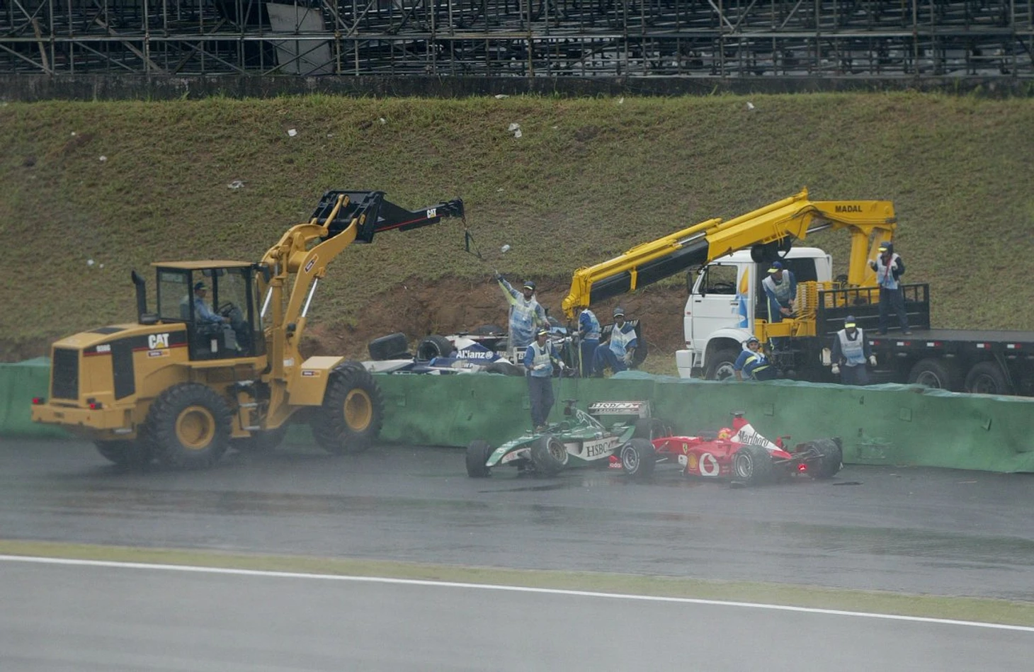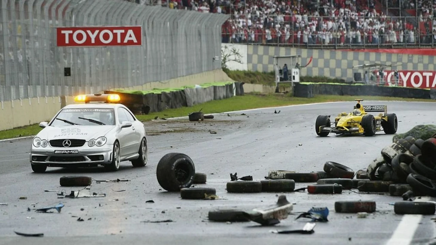 Наш герой, Джанкарло Физикелла, явно был не в восторге от новой машины. Скорости не было, да и технические поломки преследовали его. В Австралии, Физико шел девятым, но сгорел двигатель, в Малайзии сломалось сцепление на старте. На очереди была гонка в Бразилии. Причем, в квалификации Физико показал великолепное восьмое время, но Физико всегда любил Интерлагос и показывал здесь хорошие результаты. В тот день, никто не сомневался, что борьба развернется между Ferrari, McLaren и Renault за победу в гонке, конечно сюрприз Марка Уэббера(Jaguar), в квалификации, показавшему третье время и уступившему 0,044 времени поула Рубенса Баррикелло, выглядел неожиданно. Но все же лидеры должны были выигрывать гонку. Старт гонки был пренесён из-за дождя, а затем был дан по машиной безопасности.