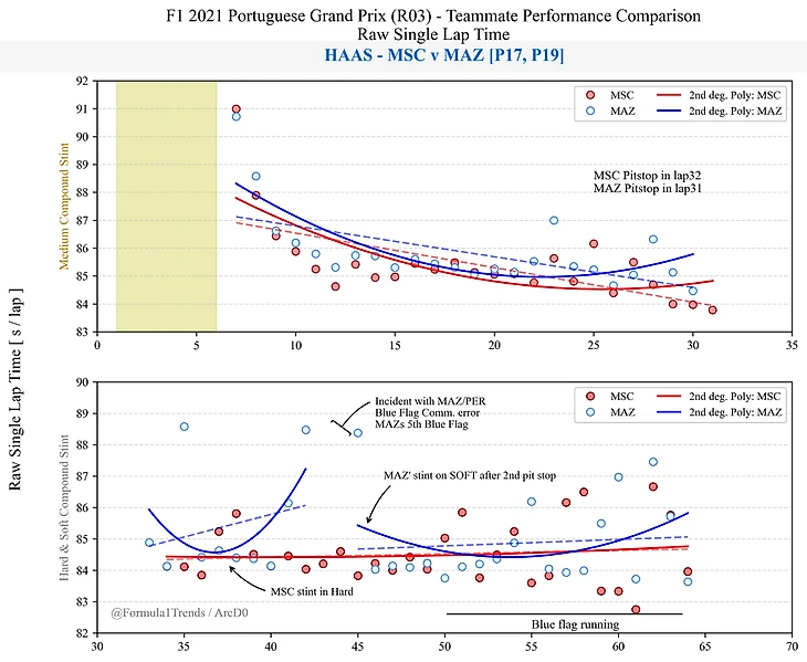 Пользователь ArcticDrag0n выложил на реддите сравнение Мазепина и Шумахера на дистанции гонки в Портимане (опять же – она самая характерная, лучшая по части иллюстрации проблем).