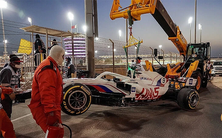 Первая гонка в Бахрейне закончилась невероятно быстро – Мазепин надавил на педаль газа во втором повороте, машину сорвало с траектории и выбросило в отбойники. Вину за вылет возложили на холодные шины, которые не дали сцепления на остывающем треке в Сахире. Однако этот разворот был не первым, поэтому в команде задумались, как помочь пилоту.