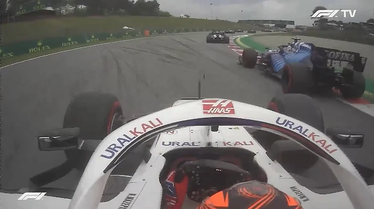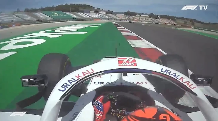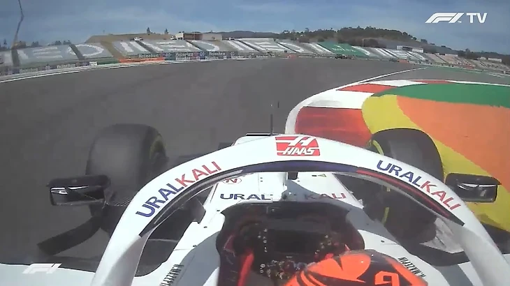В записях гонок Никиты с бортовых камер заметно, что после медленных поворотов он разгоняется значительно хуже ближайших конкурентов – Шумахера и пилотов «Уильямса». Машина набирает ход плавно, но ускоряется плохо – как будто Мазепин слабо давит на газ (не исключено) или под влиянием особенностей настройки электронной педали, чтобы не дать уйти машине в занос (более вероятно). В любом случае неспешный разгон ведет к значительному отставанию на последующей прямой – например, на отметке окончания первого сектора португальской трассы (после четвертого поворота, в котором машины склонны к заносу) Никита проигрывал Мику 6-10 км/ч.