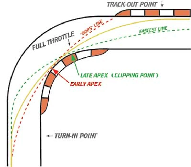 В результате более аккуратного пилотажа Макс уже будучи на апексе продолжает доворачивать вправо.
