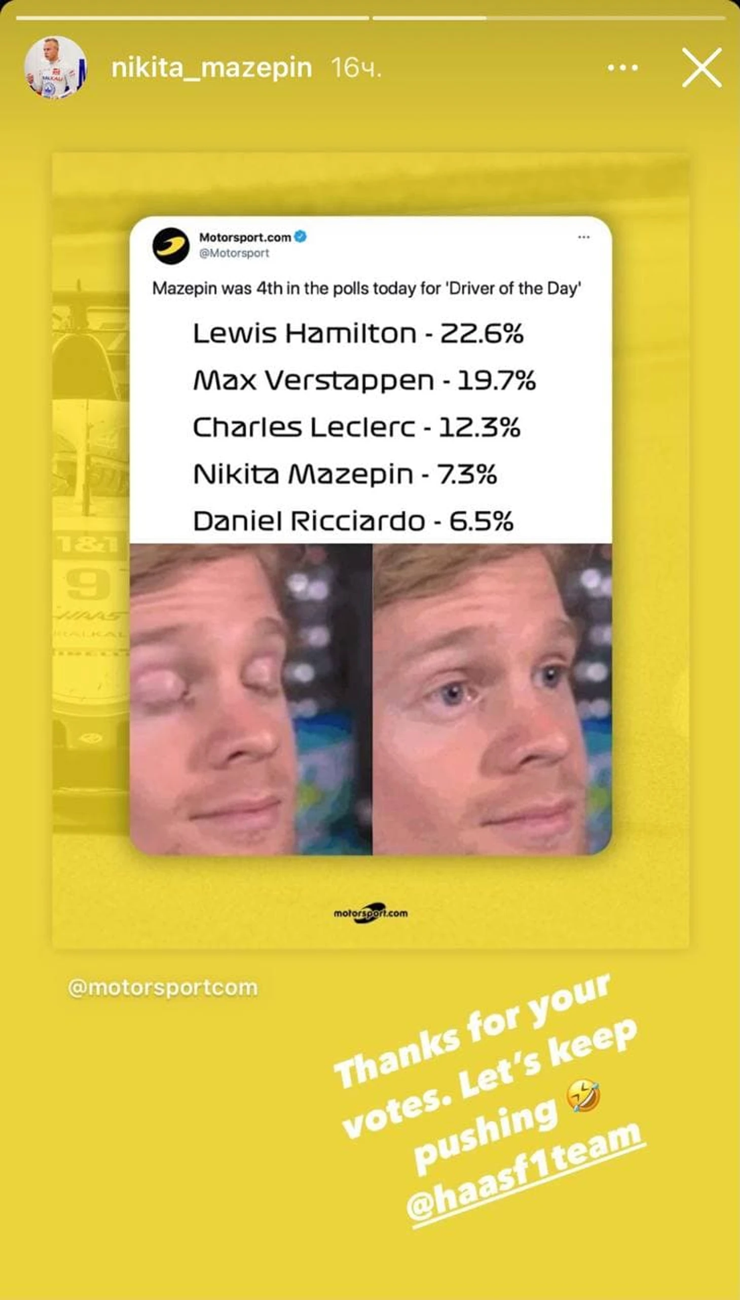 Никита Мазепин продолжает бесить гонщиков, что даже Тото Вольф по ради просит дирекцию гонки вывешивать синие флаги, поскольку Льюис его скоро (!) нагонит. Историческая ху