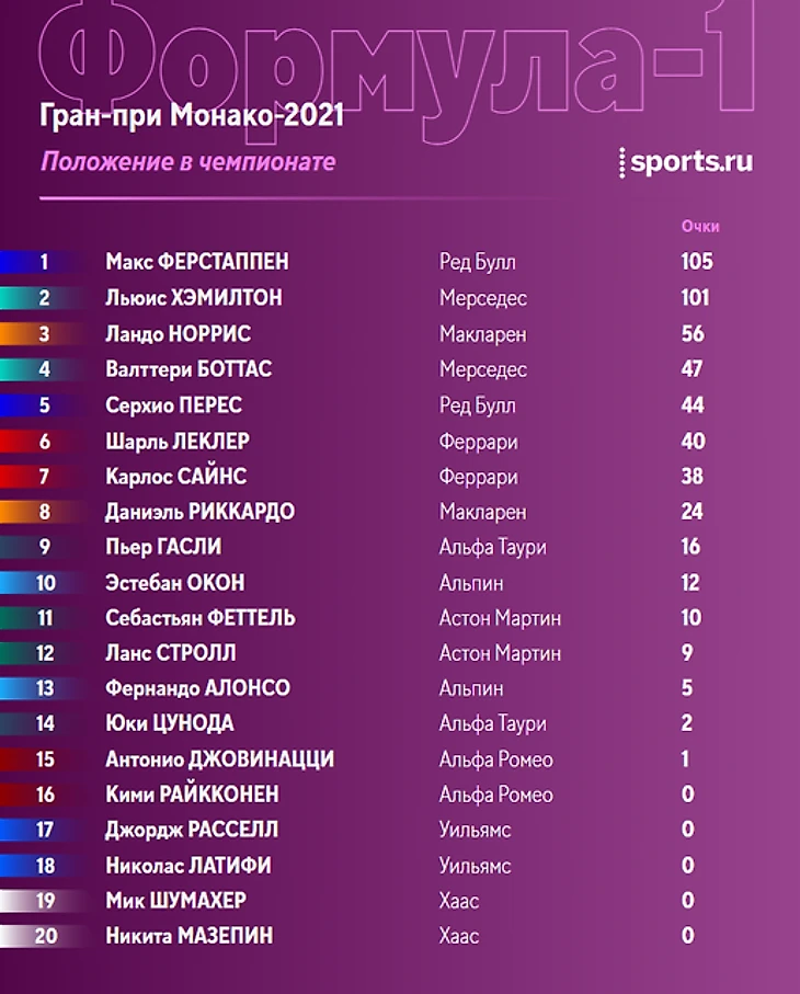 Самое интересное сейчас – это расклады в чемпионате, если все финишируют на текущих позициях. В таком случае Ферстаппен станет лидером сезона и будет на 4 очка опережать Хэмилтона.