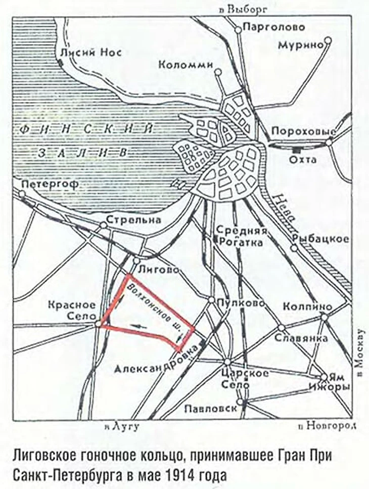 Россия включилась в процесс в 1914-м благодаря усилиям Санкт-Петербургского автомобиль-клуба (основанного еще в 1902-м). Сперва гоночные энтузиасты провели репетицию заезда в 1913-м без международного статуса, но через год оформили заявку на Гран-при как следует – и получили официальное право называть гонку «Большим призом».