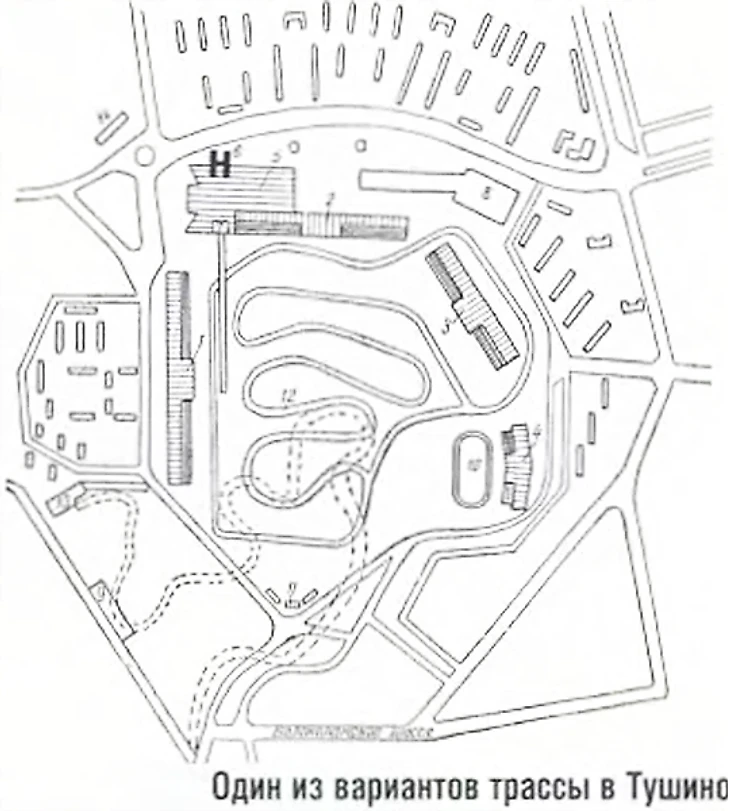 Вот и Советский Союз стремился прикоснуться к автоспорту планетарного масштаба задолго до Брежнева: еще в середине 60-х Федерация страны вступила в ФИА, и ее делегаты даже посетили Гран-при Великобритании на «Сильверстоуне» в качестве мастер-класса по организации собственной трассы и этапа. А в ноябре 1966 года в журнале «Городское хозяйство Москвы» опубликовали проект автомотодрома за авторством кафедрой проектирования автомобильных дорог МАДИ в 1964–1965-м: среди локаций предлагали Тушино, Мневники, Минское шоссе, Косино и даже Люберецкие карьеры.