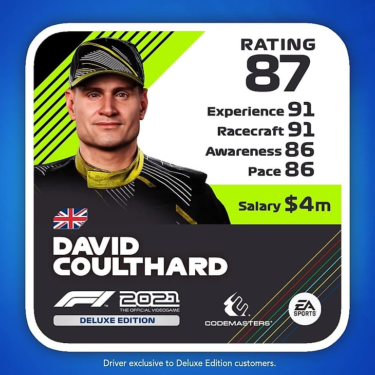 В Deluxe-версии игроки смогут не только перекупать звезд у конкурентов в режиме «Моя команда» или развивать юниоров, но и стать напарником легенд. Правда, с переходом под крыло EA цены на симулятор взлетели втрое – до 3000 рублей, а за люксовый вариант придется выложить дополнительную тысячу деревянных. Звезды прошлого представлены многократными чемпионами мира Михаэлем Шумахером, Айртоном Сенной и Аленом Простом, обладателями титулов 2009 и 2016 годов Дженсоном Баттоном и Нико Росбергом, а также Фелипе Массой и Дэвидом Култхардом.
