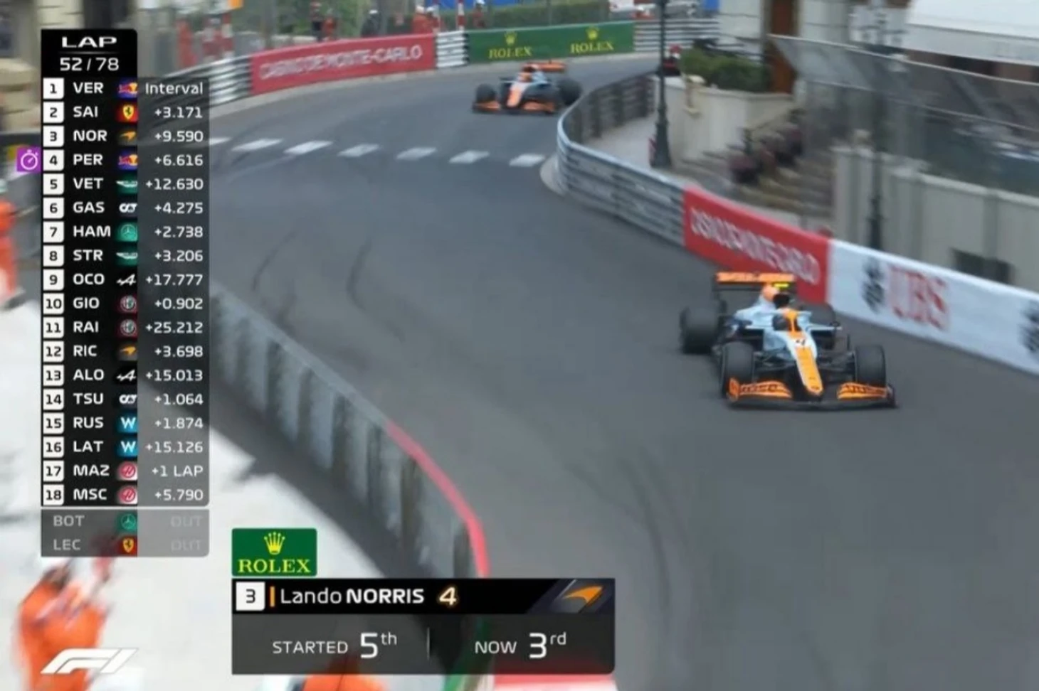 Норрис обходит Боттаса, Леклер уступает позицию Пересу и сильно отстает от Норриса, Сайнс догоняет Леклера, Риккардо стабильно 8, а Гачли стабильно 9, далее у гонщиков уже мало очков, борьбы за титул там не будет, к сожалению.