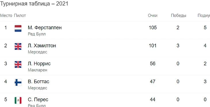 Сражение за титул продолжается. Очередной раунд сражения между Максом Ферстаппеном и Льюисом Хэмилтоном завершился в пользу первого. Голландец выиграл гонку с отрывом в 9 секунд от Карлоса Сайнса на «Феррари». Третьим приехал пилот «Макларена» Ландо Норрис. Макс возглавил чемпионат со 105-ю очками. Льюис же набрал 101 очко. Впервые в карьере Ферстаппена.