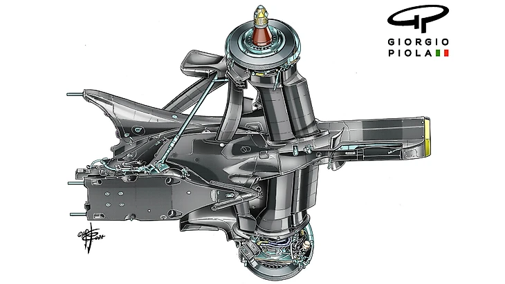 В этом году мы уже обсуждали, как «Ред Булл» гениально сохранил существующие точки крепления подвески, при этом сумев сдвинуть подвеску еще дальше назад, чтобы создать больший объем воздушного потока вокруг диффузора.