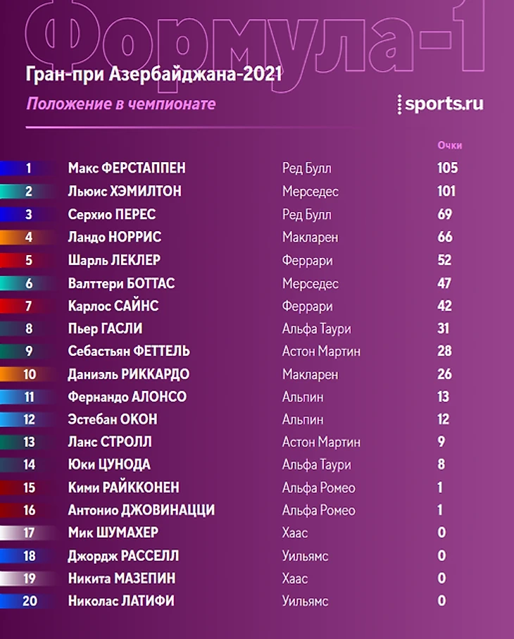 Макс остался недоволен результатами субботы – «тупая» квалификация четырежды прерывалась красными флагами, и гонщику из Нидерландов не удалось проехать быстрейшую попытку. Но старт с третьей позиции не помешал Ферстаппену раскрыть потенциал болида: Шарля Леклера он обогнал на трассе, Хэмилтона – на пит-стопе. Напарник по «Ред Булл» Серхио Перес грамотно оборонялся от семикратного чемпиона и стал своеобразным буфером между Максом и Льюисом. «Мерседес» остался без второго номера (Валттери Боттас копошился где-то во второй десятке) и ничего не мог противопоставить скорости австрийцев.