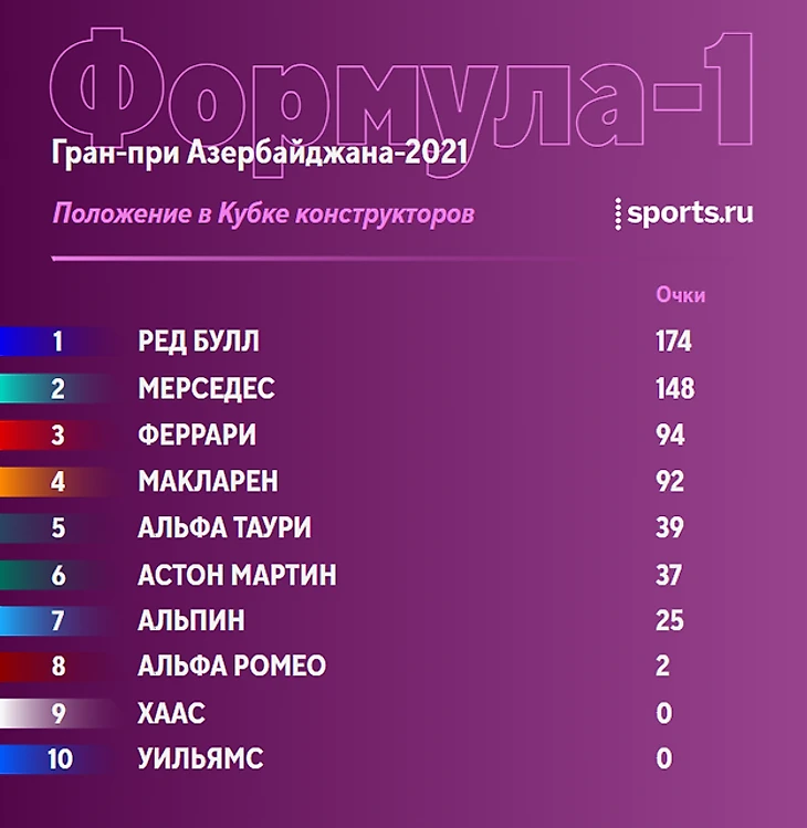 А победа Переса увеличила отрыв австрийцев в Кубке конструкторов с одного до 26 очков.