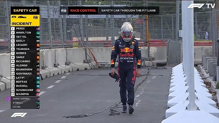 К 46-му кругу Ферстаппен на 4,5 секунды оторвался от Переса и на 6 – от Хэмилтона. «Ред Булл» готовился завершить прекрасный Гран-при первым дублем с 2016 года, однако на главной прямой машина претендента на титул резко завернула в стену.