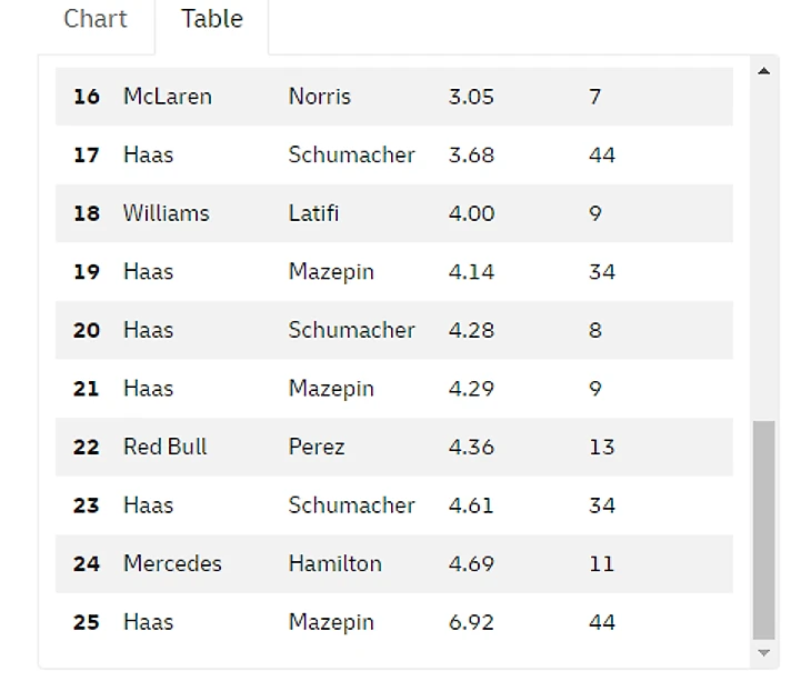 Но на остановках в боксах лучшая команда последних лет вместо не рекордного, но стабильно быстрого пит-стопа хотя бы на 2,5 секунды выдали колоссально медленную заминку – даже хуже «Хаасов»: 4,6 секунды.