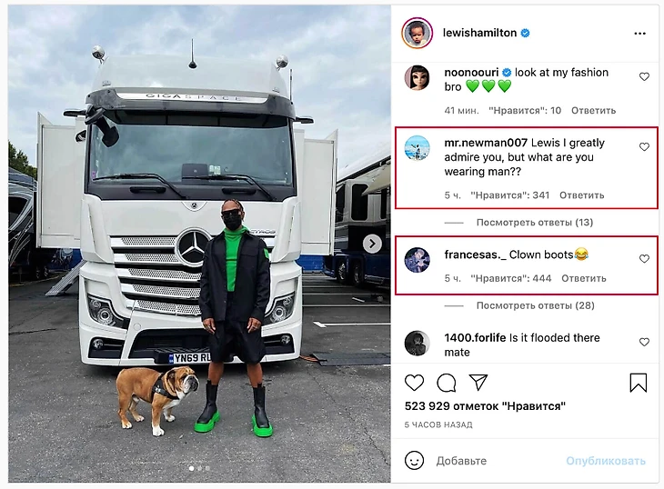 The Sun назвал их «дурацким выбором», а подписчики срывали джекпот лайков в комментариях: «Льюис, я очень восхищаюсь тобой, но что ты напялил??», «Клоунские ботинки», «Там что, потоп?!».