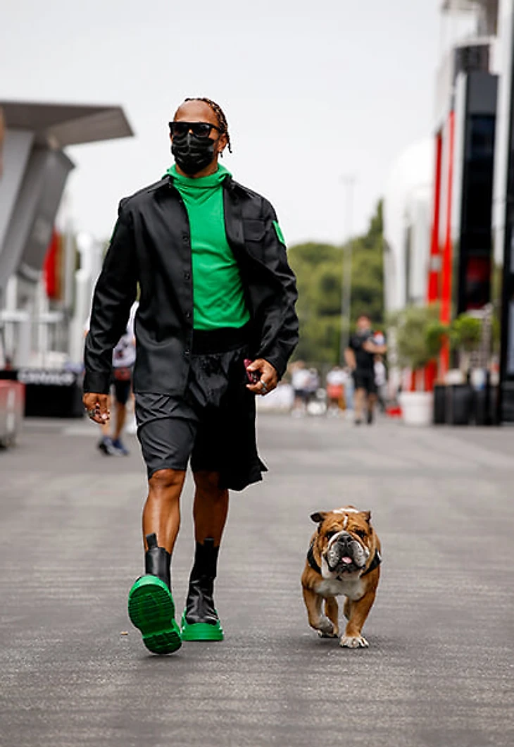 Семикратный чемпион мира Льюис Хэмилтон любит удивлять мир своеобразным чувством стиля и совершенно дикими прикидами. Вот и на Гран-при Франции на «Поль-Рикар» он заявился в контрастном черно-зеленом ансамбле.
