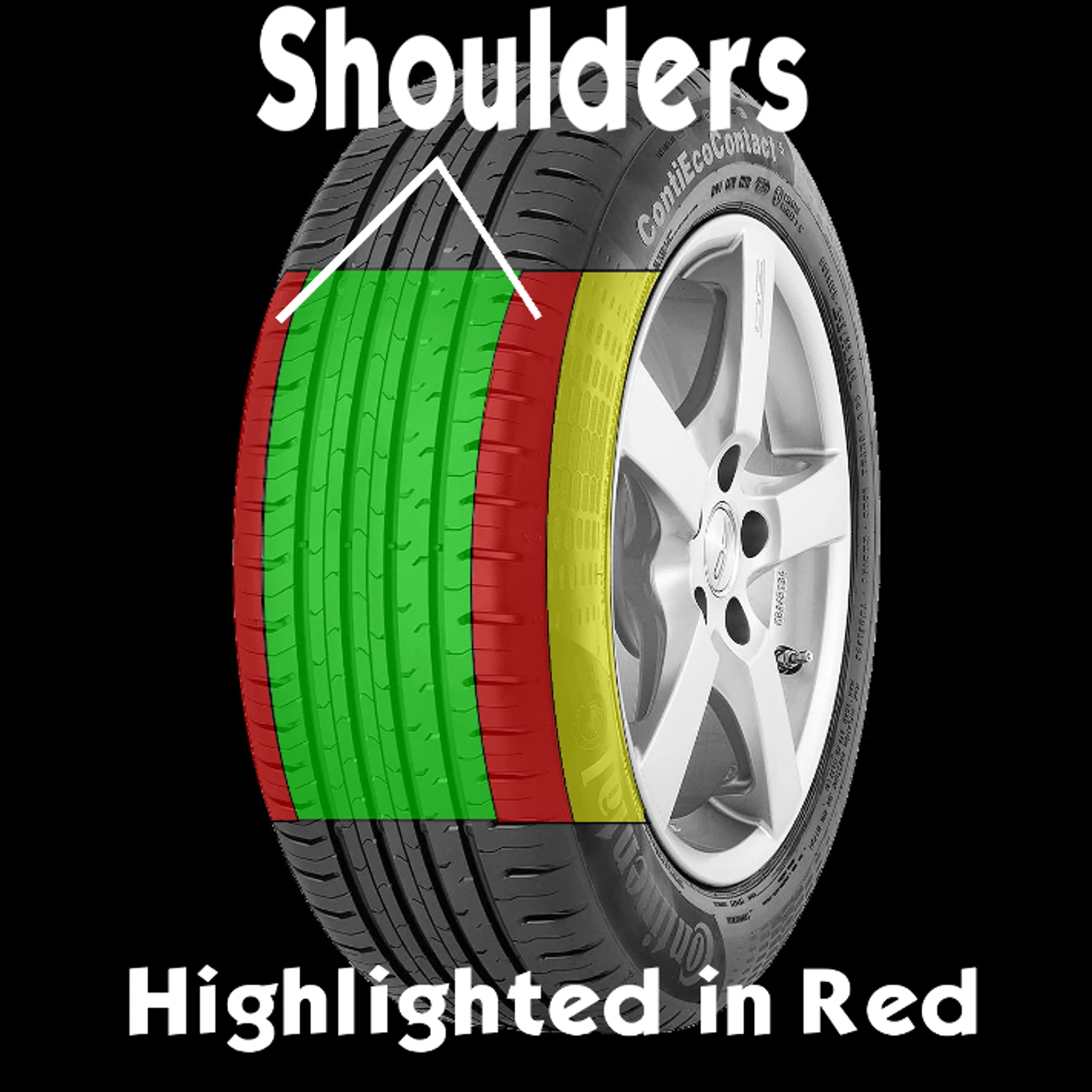 «Плечом» называется угловая секция шины, на стыке протектора и боковины (на рисунке «плечи» отмечены красным)