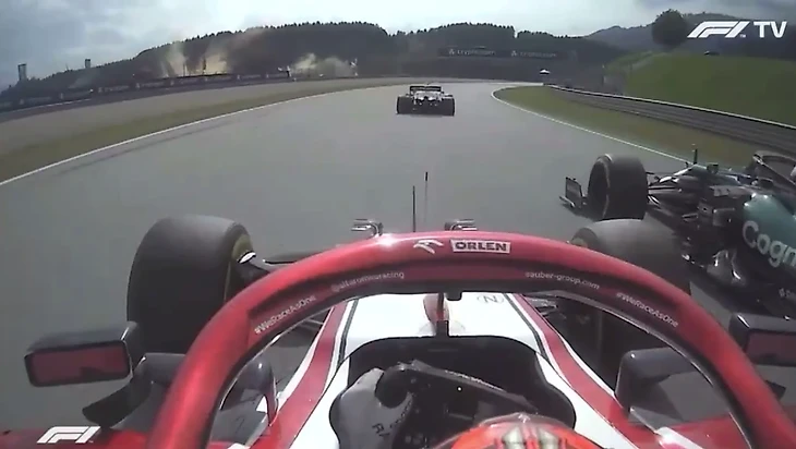 Финал Гран-при Австрии прошел под желтыми флагами: пока Макс Ферстаппен уверенно пересекал финишную черту, в середине пелотона битва между Расселлом, Райкконеном и Феттелем закончилась мощной аварией.