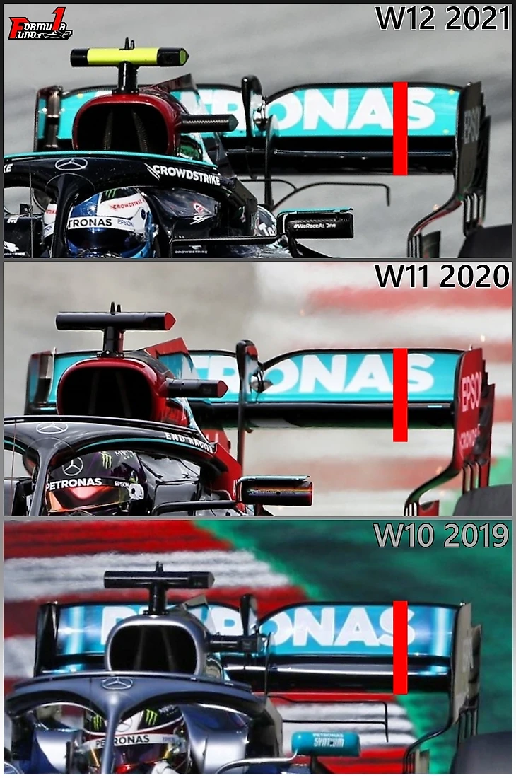 Трудно отрицать: разница в площади задних анткрыльев «Мерседеса» за 3 последние сезона и правда есть.