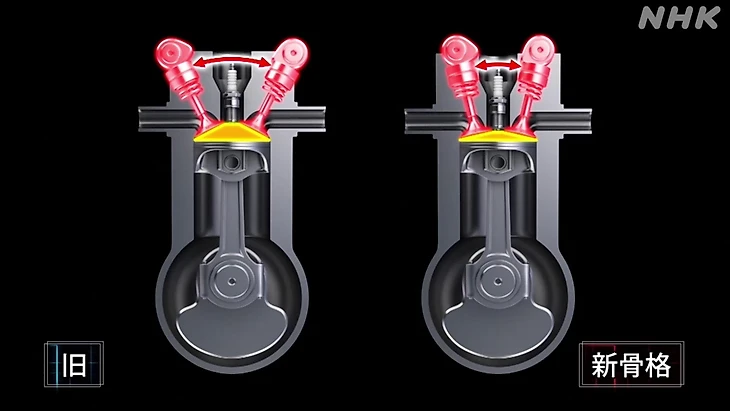 «Прежде всего мы поменяли расположение распределительного вала для большей компактности – теперь он располагается ниже, – рассказал Асаки. – Также мы изменили угол клапанов – прежде всего ради эффективности сгорания».