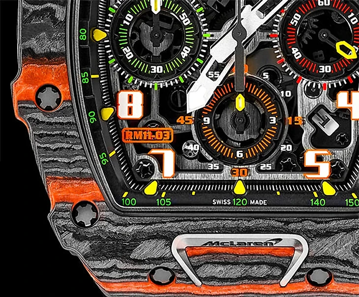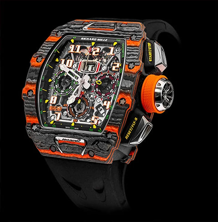 Эта ультралегкая модель вдохновлена болидом «Формулы-1»: корпус выполнен из карбона со вставками из титана и оранжевого кварца. Всего таких изготовили лишь 500 экземпляров и на момент запуска продажи в 2018 году оценили в $191 500. И с тех пор стоимость сильно возросла.