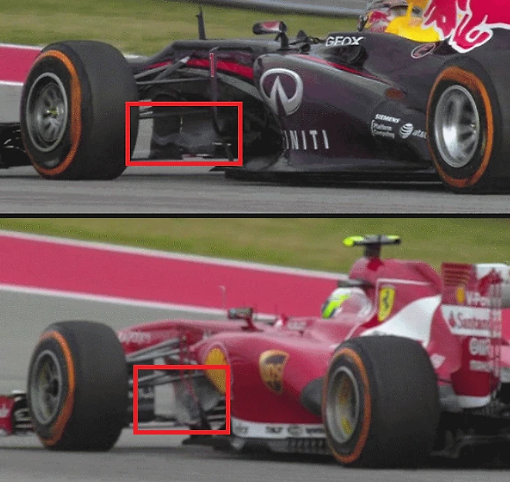 Конечно, может показаться странным сравнивать днище болида «Формулы-1» со снимками сверху, но на этом снимке видна четкая разница в форме днища болидов 2021 и 2022 годов. Под днищем (не видно) болида 2022 года имеются специальные каналы по всей длине, а ступенчатое днище, как сейчас.
