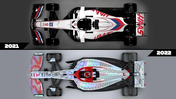 Если посмотреть на эти два болида в профиль, становится ясно, что болид 2022 года гораздо чище, особенно в области по обе стороны от кокпита, где нынешние дефлекторы и другие элементы аэродинамики, которые можно увидеть на болиде 2021 года - используемые для настройки и направления воздушного потока вдоль болида - больше не являются частью дизайна.