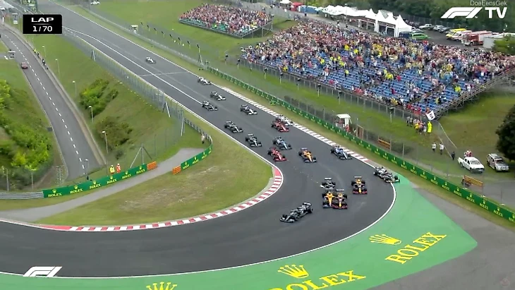 Гран-при Венгрии подкинул еще немного природных сложностей «Формуле-1»: после жары, сравнимой с «финской баней» (с) Боттас), и смертельных для «Феррари» порывов ветра скоростью 35 км/ч, Будапешт встретил гоночное утро длительным дождем. Он смыл всю резину с трека, обнулив накатанные траектории и дополнительное сцепление – а еще подарил феноменальный скандальный старт с места в мокрых условиях.
