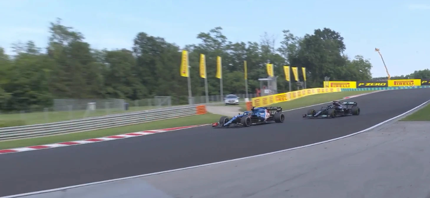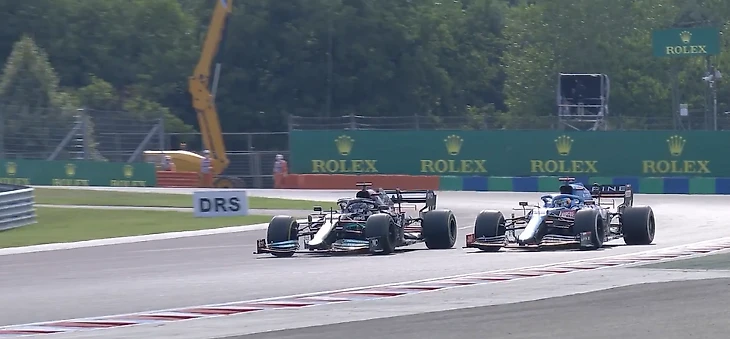 Испанец так и отбивался все 10 кругов подряд вплоть до момента, пока его «хард» (на 8 кругов стаhше более мягкого «медиума» на «Мерседесе») не сдал окончательно. Тогда как раз №14 и продемонстрировал моментальный эффект от любой ошибки на «Хунгароринге» – заблокировал колеса…