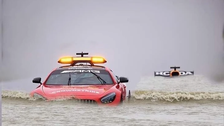 Пилот медицинского автомобиля Алан ван дер Мерве о состоянии трассы: «На самом деле все не так плохо. Стоячей воды на трассе не так много. Но существует большая проблема с видимостью. Как только вы окажетесь позади другого болида, вы перестанете видеть хоть что-то».