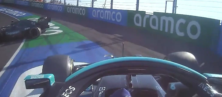 Но вообще-то Боттас все равно остается одним из лучших гонщиков мира – с потрясающей сверхчеловеческой реакцией, скоростью принятия решений и выбора места для болида. Только посмотрите, как точно он спас «Мерседес» от аварии с внезапно развернувшимся в опасном крутом бэнкинге Себастьяном Феттелем – проскочил между «Астон Мартин» и стеной буквально в сантиметрах от катастрофы.
