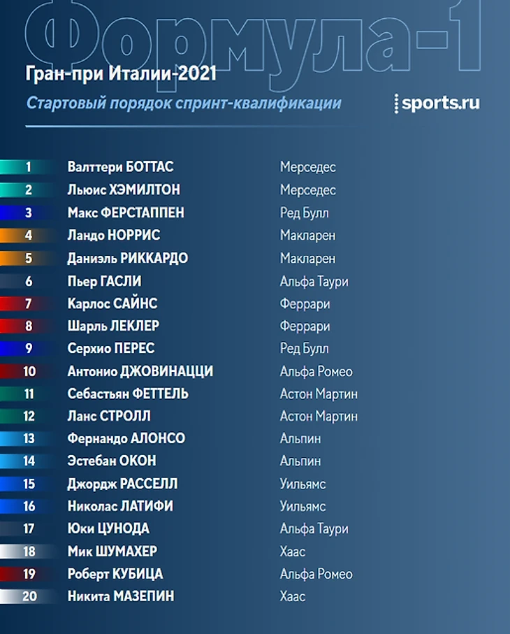 Всем привет! В 17:30 по московскому времени начнется спринт-квалификация перед Гран-при Италии.