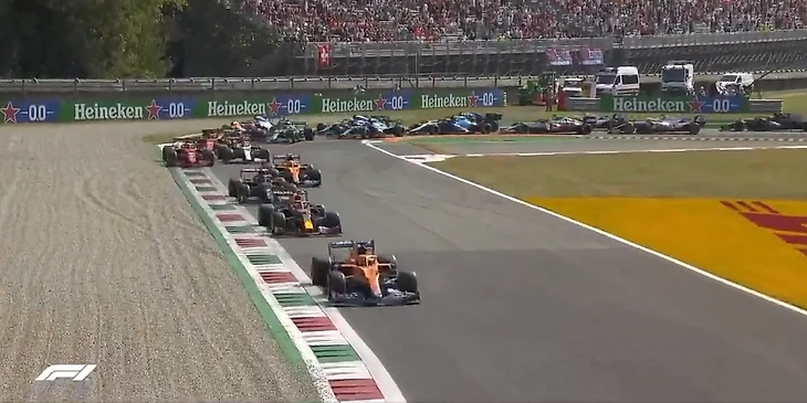 Посмотрим еще раз глазами Ландо Норриса – чистая заминка на первых метрах!