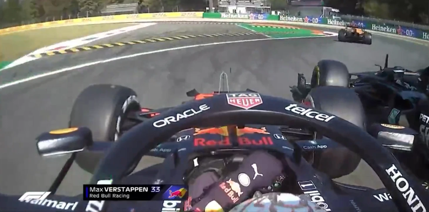 «Ред Булл» подпрыгнул на поребрике, и Ферстаппен потерял контроль над машиной. Тогда она и соскользнула в «Мерседес» – до контакта задними колесами.