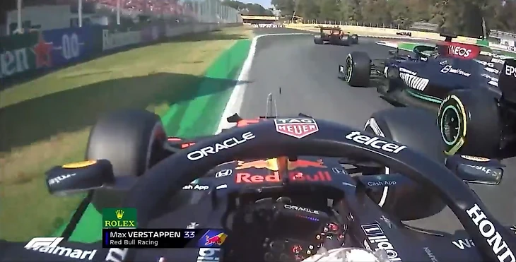 Я лично согласен с Драйвером 61, Хемилтону надо было выдавливать Макса нахер и это был бы чемпионский маневр, но проблема в том, что Хем выезжал с пит-лейна, а Макс гнал по прямой, так что Льюис не был уверен в том, где находится болид РБ относительно его болида.