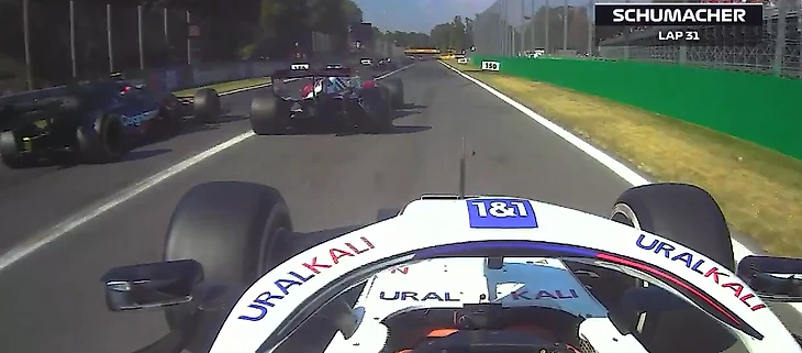 В итоге Феттель свалился сразу на пять позиций и сломал машину – отбиваться от соперников оказалось очень сложно. И положение стало еще хуже, когда на рестарте на 31-м круге в него въехал старый друг семьи Мик Шумахер на «Хаасе».