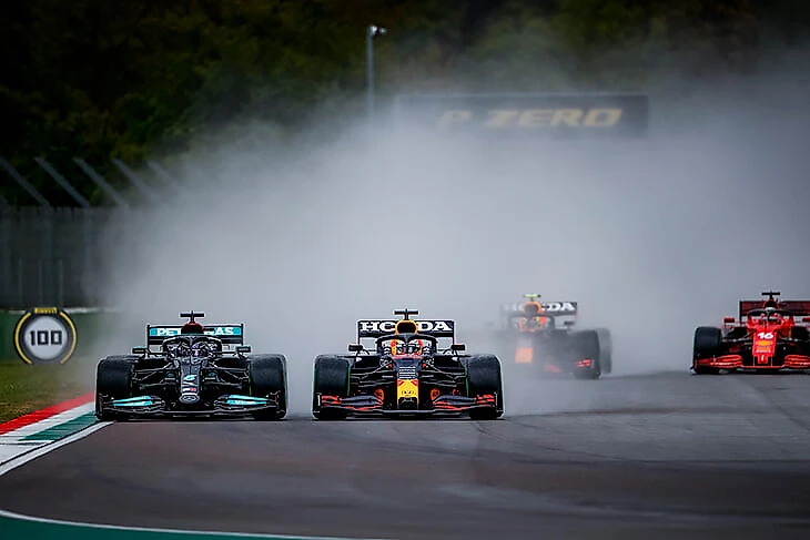 В Имоле, на очень мокрой трассе, Ферстаппен вырвался вперед на старте, а Хэмилтон пытался войти в поворот по внешней траектории. Льюис почти поравнялся с передними колесами болида Ферстаппена на подходе к повороту, в зоне торможения оказался чуть впереди, а затем чуть-чуть позади в середине поворота, когда вход в поворот у Ферстаппена получился слишком глубоким. Итог – Хэмилтон проехался по поребрикам в зоне безопасности в попытке избежать контакта, поскольку Ферстаппен просто не оставил ему места.